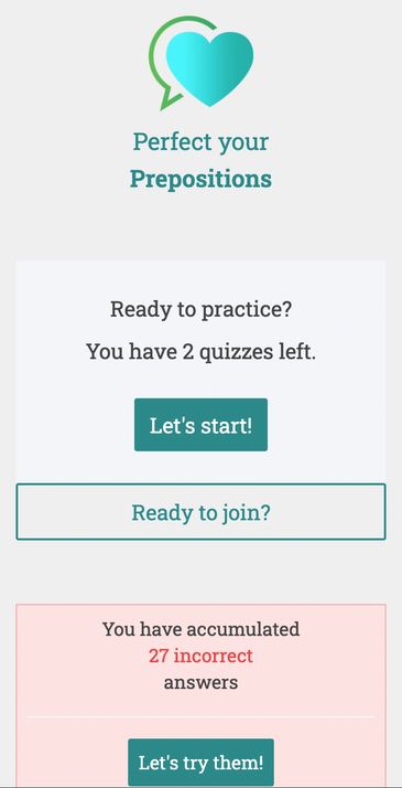 Unlock enhanced language skills and confidence by mastering prepositions with 'Perfect Your Prepositions.' Whether you're a beginner or advanced learner, our app helps you navigate English with precision